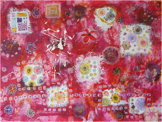 Created using mixture of household and art paint and prints from various magazines. On wood.